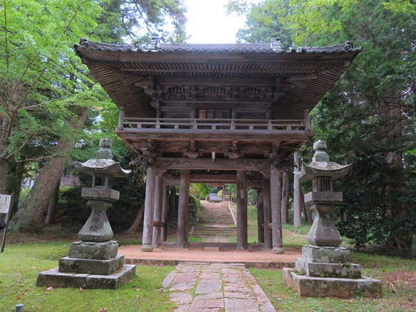 赤淵神社の石鳥居と楼門(宝暦2年)をくぐると、静寂の境内には随神門と宮寺であった旧神淵寺の観音堂、さらに勅使門(元禄7年)から奥へ進むと拝殿・御本殿へと続く。社壇手前の右奥には国重要文化財に指定された昭和45年に日下部氏末裔諸氏族により建碑された「赤淵神社由来記」の石碑がある。