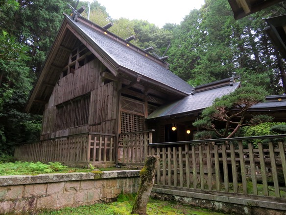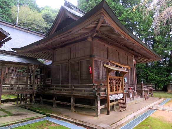 各本宮や大海神社の神殿はもちろん檜皮葺であるが、ほとんどの末社の屋根は「杼葺」と書かれている。この聞き慣れないこの杼葺であるが、『大増補早引節用集』(明治14年)に「杼葺(とちぶき) 杼の橒(モクメ)尓似たるより名つくるなり」とあり、杮葺き又は板葺の一種であったのだろう。