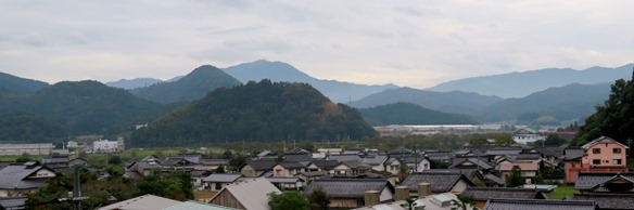 赤淵神社の眼下には円山川と粟鹿方面から合流してくる与布土川が形成した谷盆地の地形が広がっている。