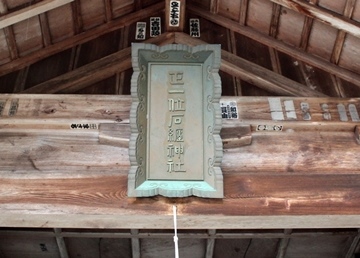 参拝した際、本殿向拝に掲げられた古い扁額には、確かに赤淵大明神(中央)・大海龍三神(右)・表米大明神(左)の三神名が記されていた。