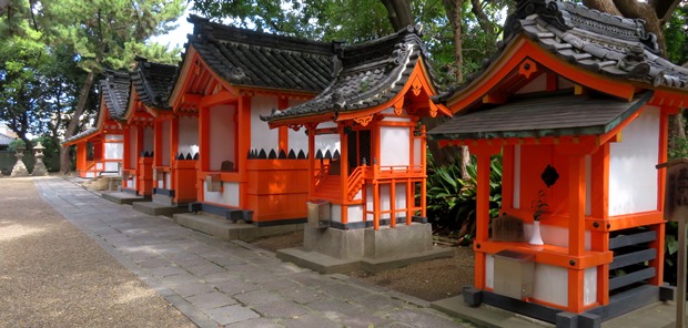 住吉大社の神苑東側に並ぶ末社群(南から)
